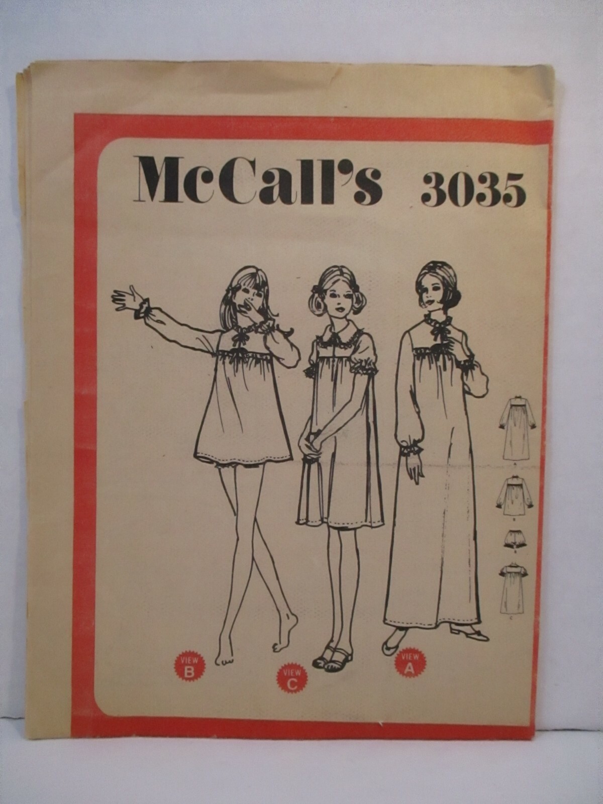 Mccall S Pattern 3035 Miss Size S Bust 32 1 2 Nightgown 3 Lengths Panties Vtg Ebay